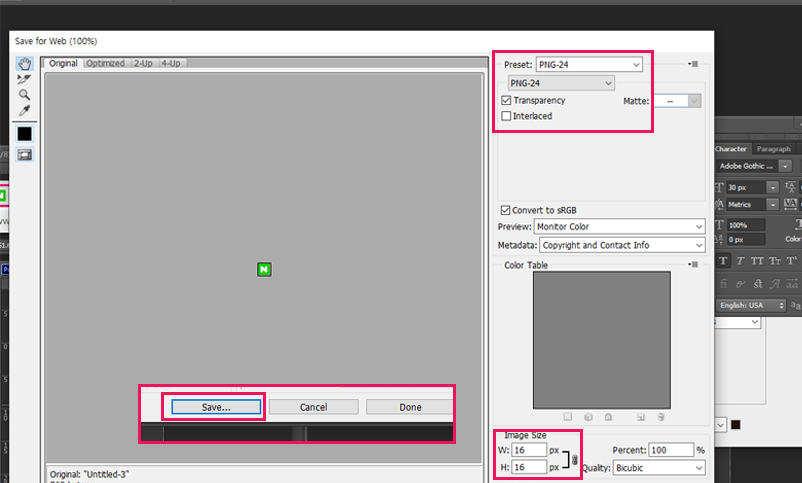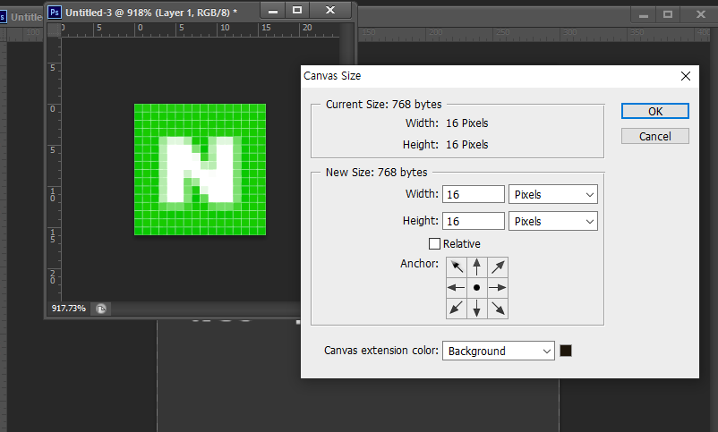 1. 포토샵에서 16x16으로 이미지를 만든다