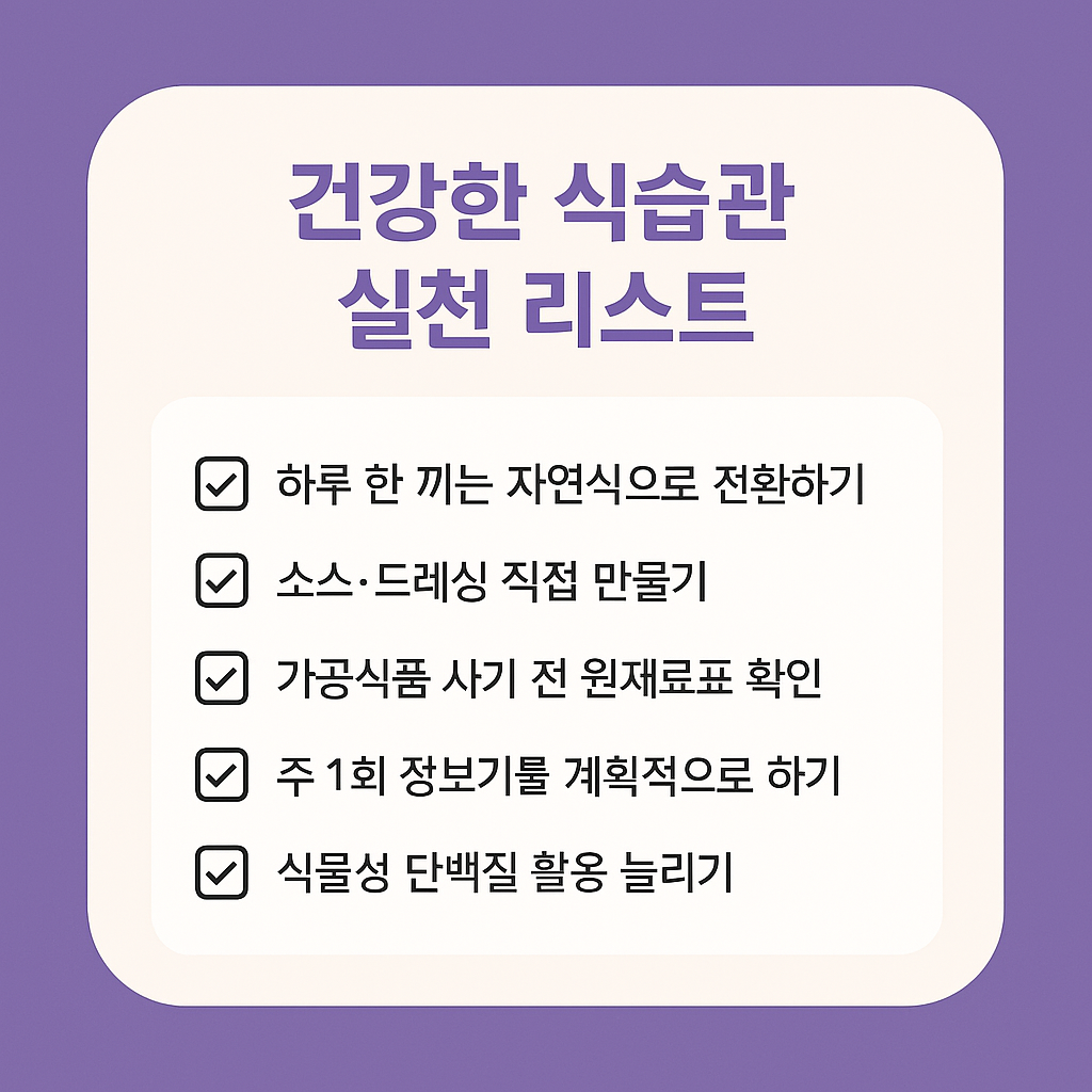 매일 먹는 아침 한 끼를 자연식으로 바꾸는 것이 가장 쉽고 효과적이에요. 특히 설탕과 흰 밀가루를 줄이는 것이 핵심입니다.