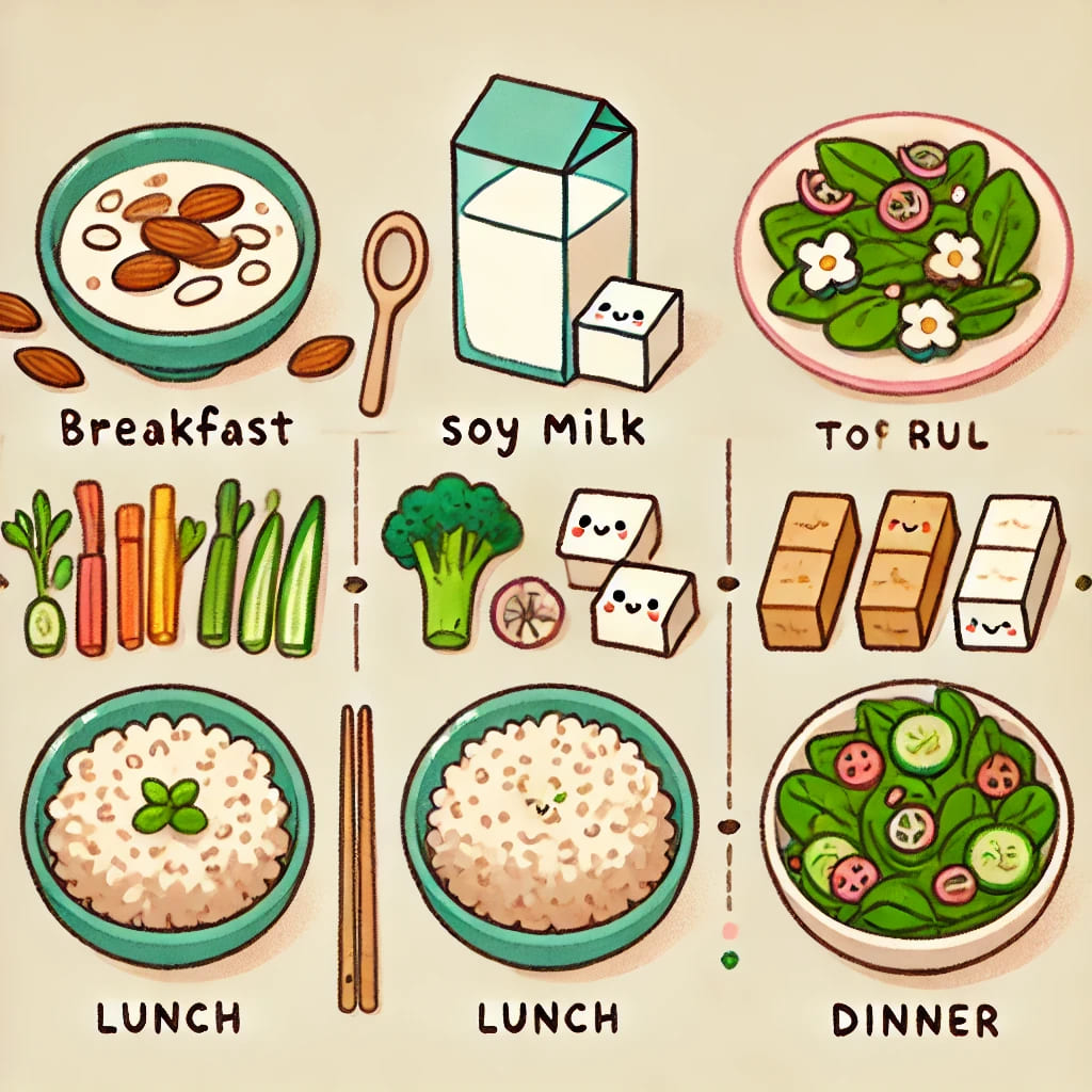 - 아침: 귀리 + 두유 + 아몬드