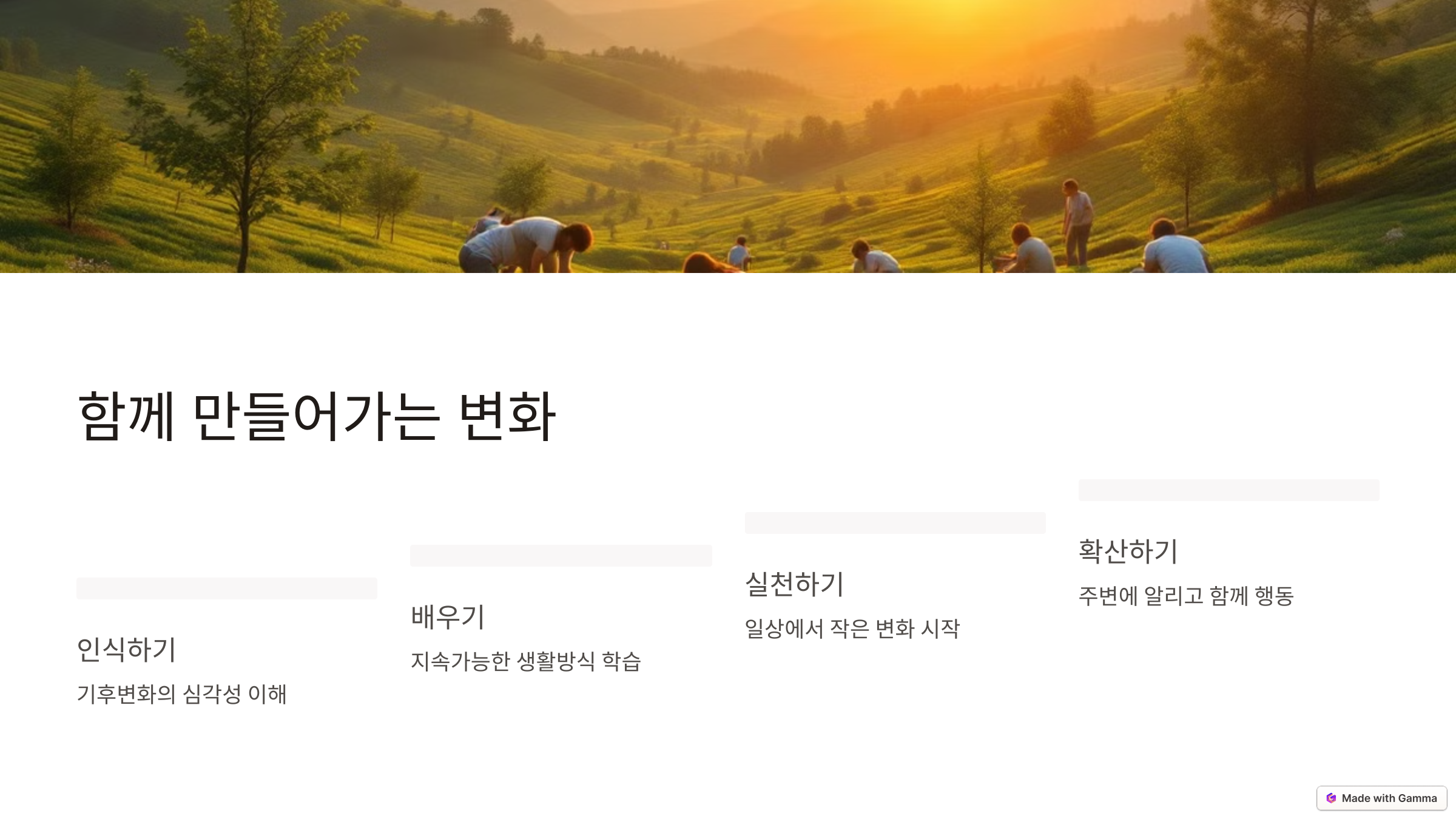 기후변화 문제는 거대한 담론처럼 보이지만, 우리 개개인의 작은 행동이 모이면 큰 변화를 만들 수 있습니다.